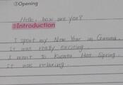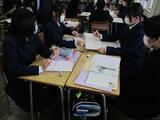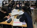 1年生英語では、英語での手紙の清書書きをおこなっていました。前時までに誰に宛てた手紙にするか、あいさつ、導入、内容、まとめなど、文章を考えALTから添削をしてもらいました。一人ひとりが清書するポイントに留意しながら、丁寧に英文を書いていました。しっかりと書く力も大切です。