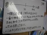 1年生道徳では、「レタス博士」をとおして、知ること・探究することの喜びについて考えていましたが、別の視点から「考える」問として、生き物で実験してもいいのか?について、個人で考え、班で熱心に議論していました。気になったことを確かめてもいいから 食べ物を粗末にすることは良くない 食べずに捨てるよりはいいなど、たくさんの意見が出されていました。