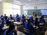 週明け1限、2年生数学では「特別な平行四辺形」について学習をしていました。平行四辺形の条件に、さらに角や辺の条件を加えるといくつかの図形になることを、模型のイメージから、作図を踏まえより具体な形で考えていくものです。説明をしっかりと聞き、丁寧にノートに書いていました。