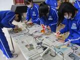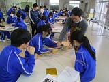 本日午後、WINGタイム(生徒会活動)で、正月飾り制作を行いました。今年で5年目となり、講師の方の指導のもと、乙地区全19地区、及び給食センター、子ども園、小学校などに贈る飾りをグループごとに制作しました。また学校運営協議会委員の方にもグループに入っていただきお手伝いをしていただきました。